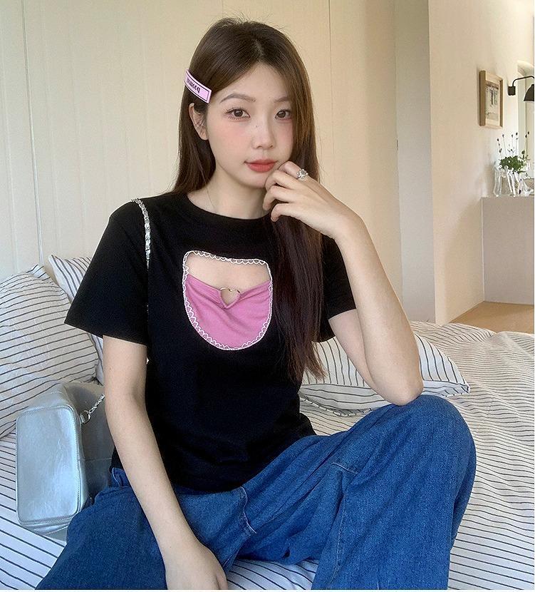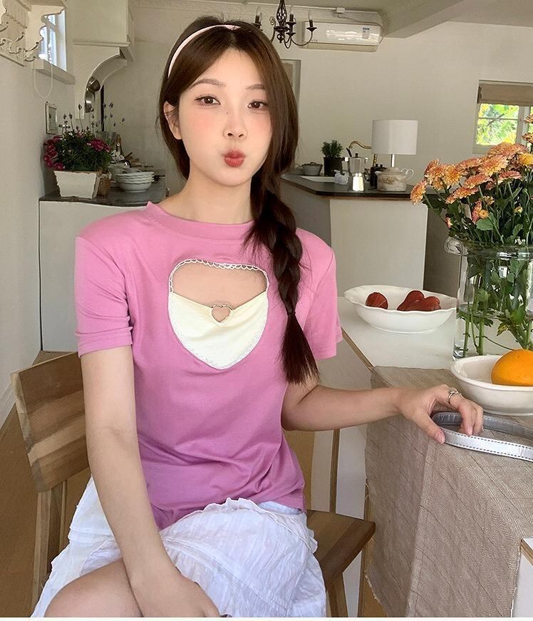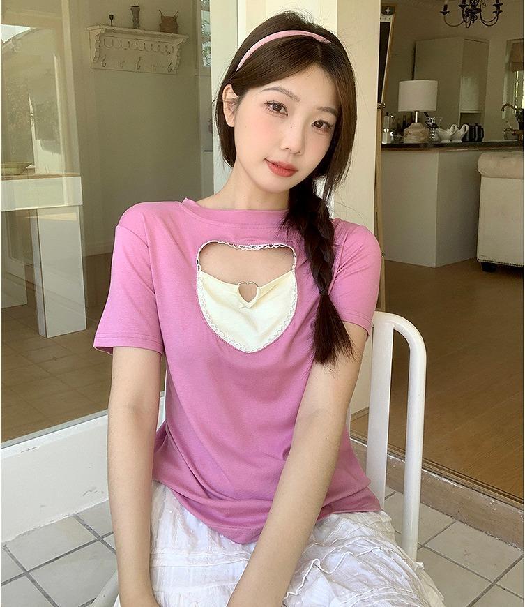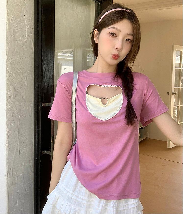 【大きいサイズ有】 レディース トップス 重ね着風 春夏 秋 新品 半袖 ピンク Tシャツ