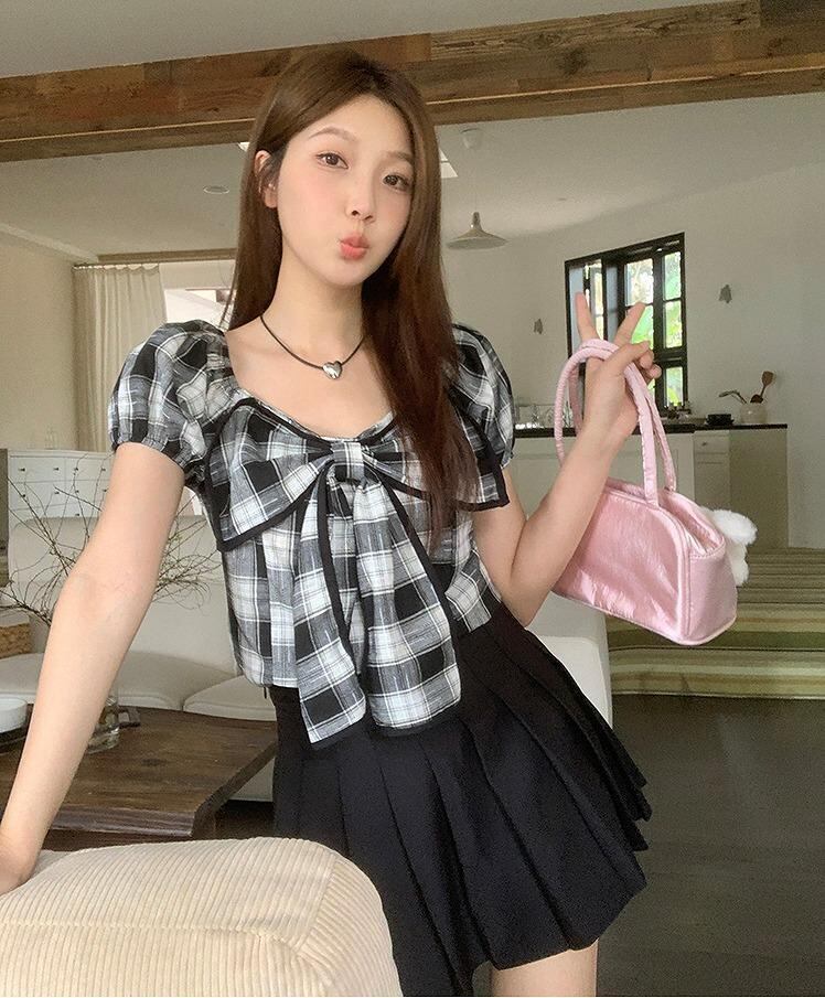 【大きいサイズ】 レディース トップス シャツ 春夏 秋 新品 半袖 リボン チェック