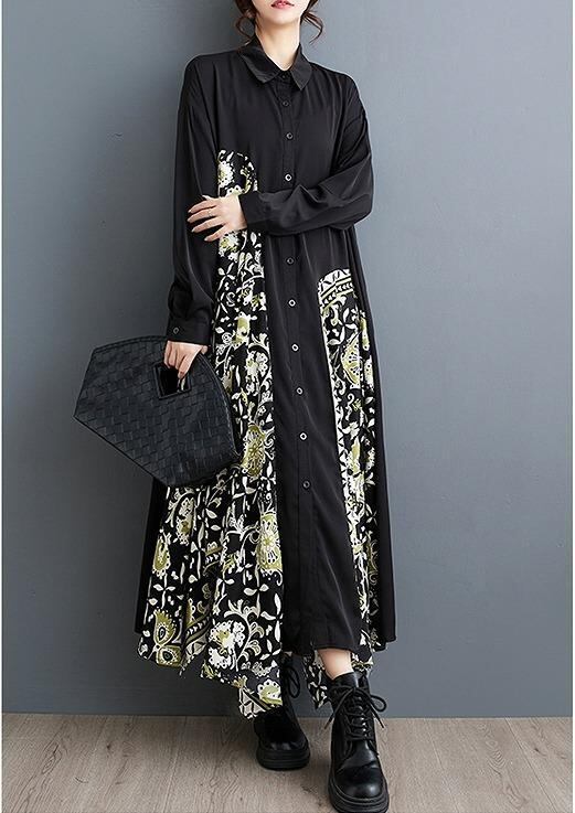 【大きいサイズ】 レディース ロング ワンピース 春夏 秋 新品 長袖 ゆったり シャツ