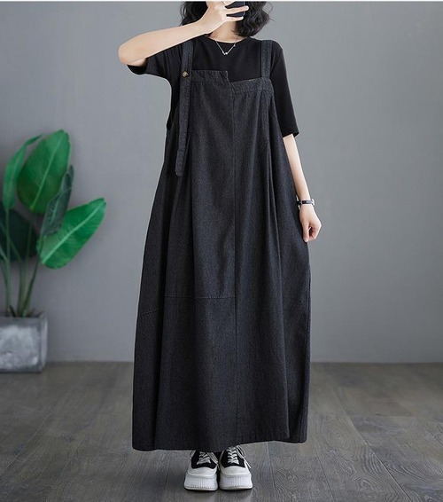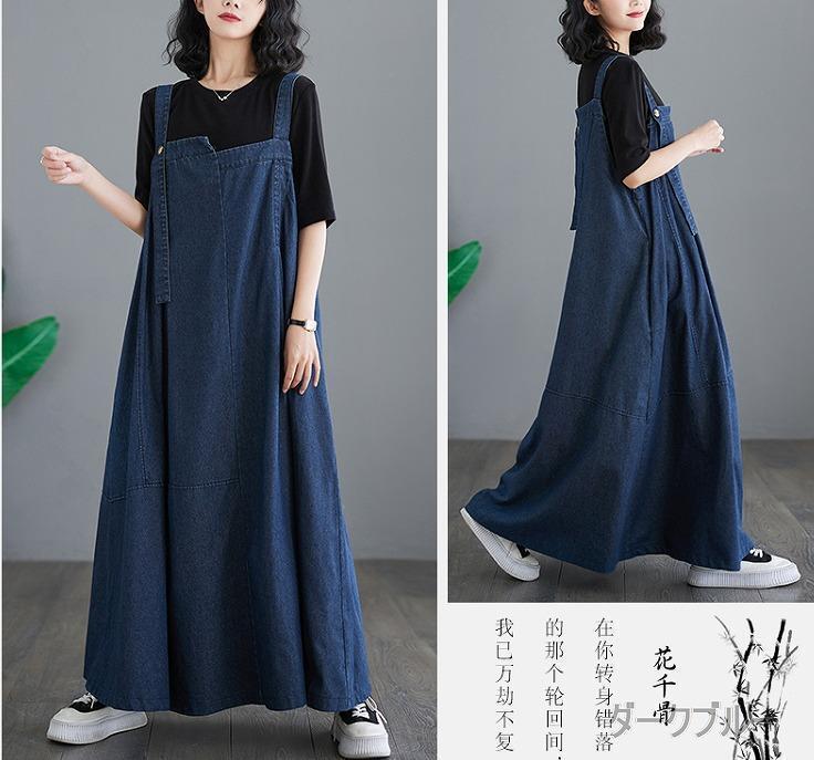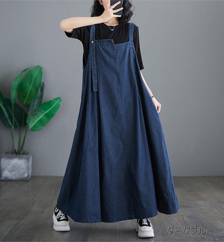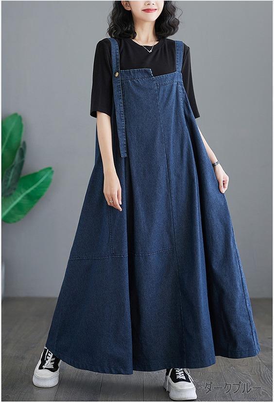 【大きいサイズ有】 レディース サロペット ワンピース 春夏 秋 新品 デニム スカート ロング