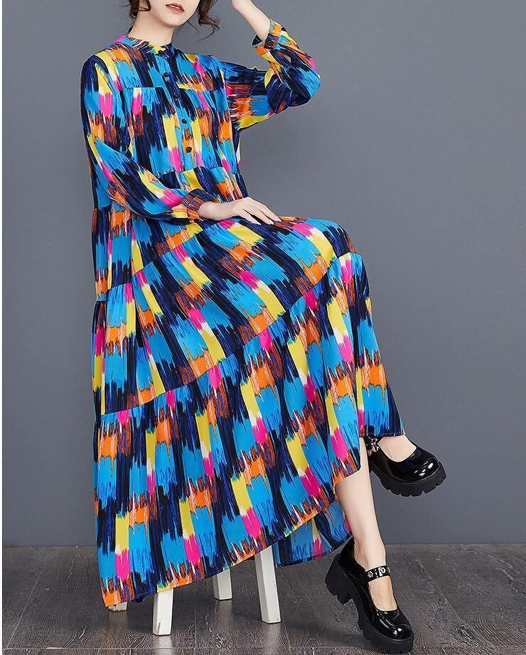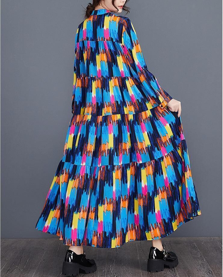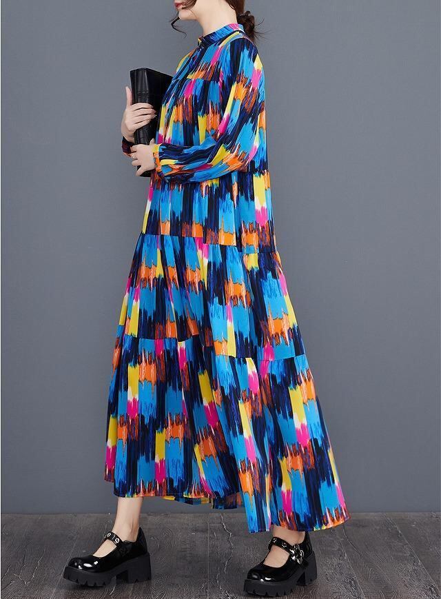 【大きいサイズ】 レディース ロング ワンピース 春夏 秋 新品 長袖 シャツ