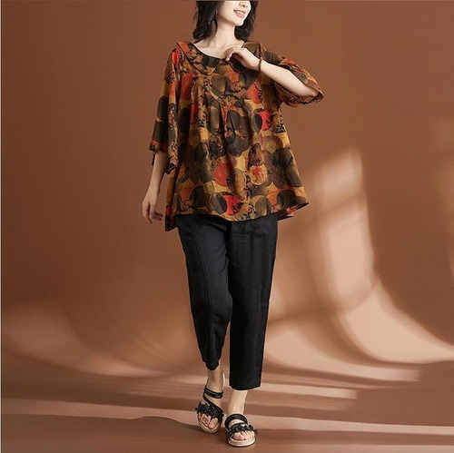 【大きいサイズ】 レディース トップス ブラウス シャツ 春夏 秋 新品 半袖 五分袖