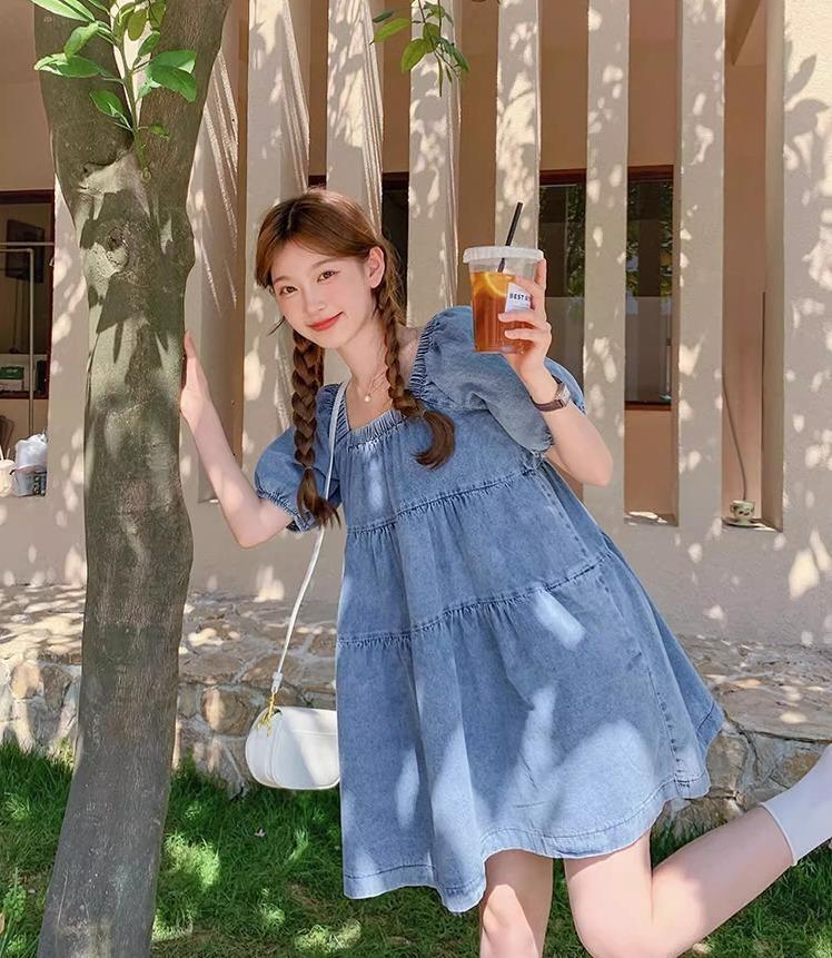 【大きいサイズ有】 レディース デニム ワンピース 春夏 秋 新品 半袖 小さいサイズ