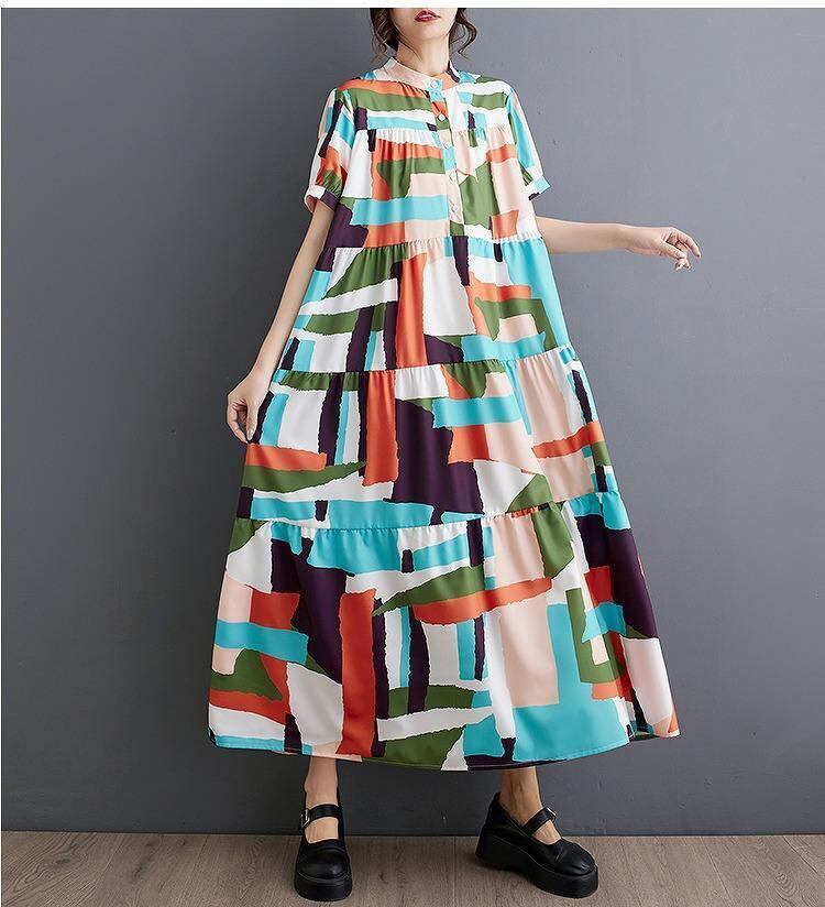 【大きいサイズ】 レディース ロング ワンピース 春夏 秋 新品 半袖