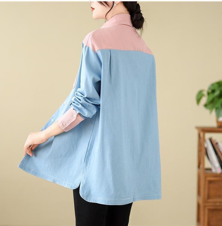 【大きいサイズ】 レディース トップス シャツ 春夏 秋 新品 長袖 ピンク デニム