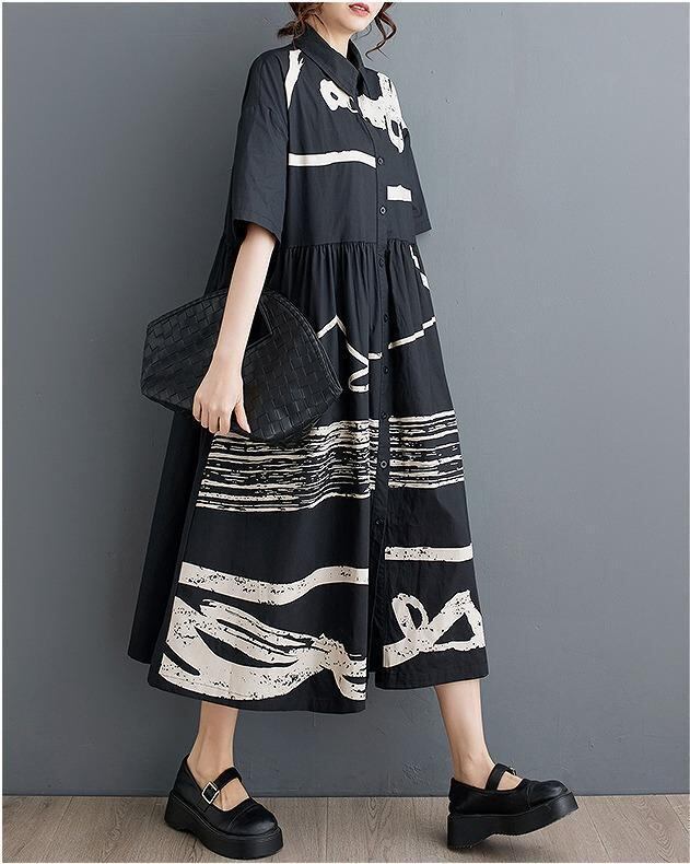 【大きいサイズ】 レディース ロング ワンピース 春夏 秋 新品 半袖 シャツ