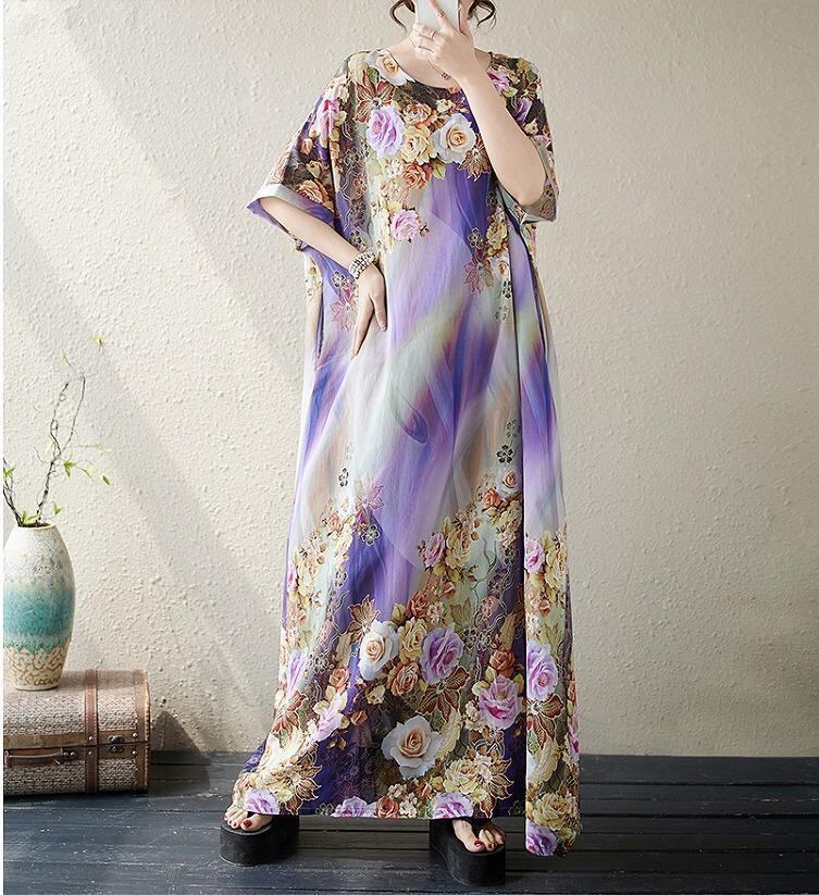 【大きいサイズ】 レディース ロング ワンピース 春夏 秋 新品 半袖 花柄