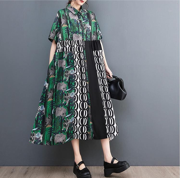 【大きいサイズ】 レディース ワンピース 春夏 秋 新品 半袖 グリーン シャツ