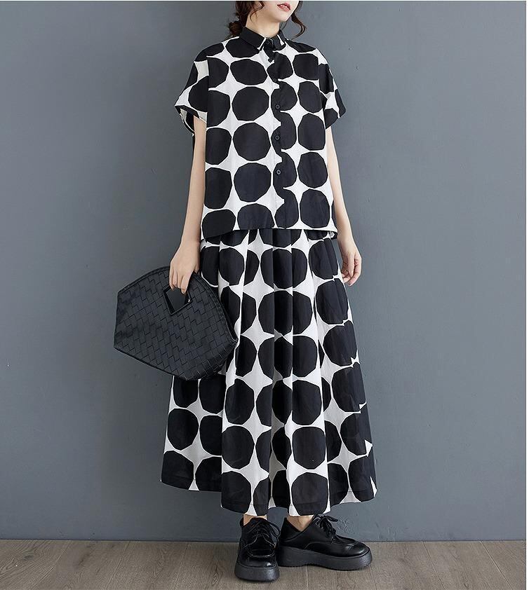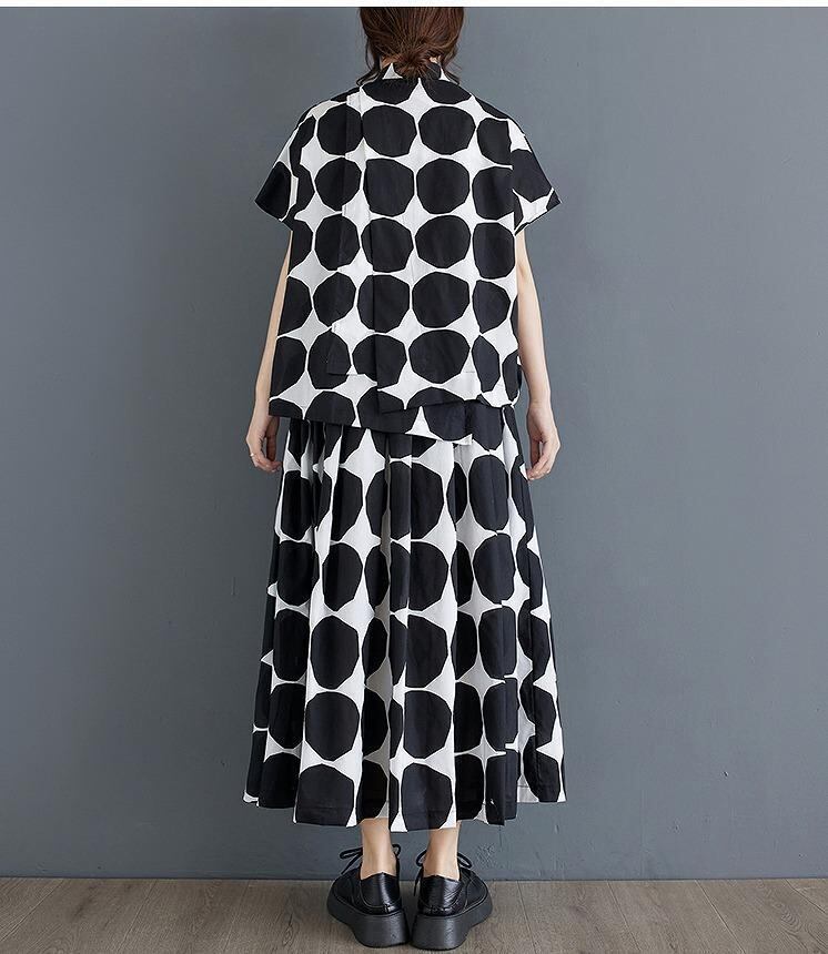 【大きいサイズ】 レディース セットアップ スカート 春夏 秋 新品 半袖 ドット柄 トップス 上下セット