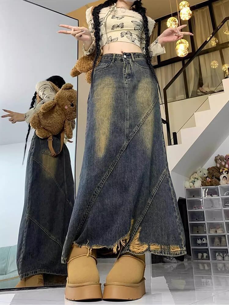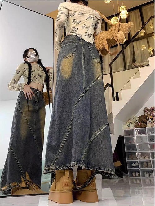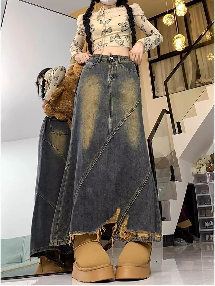【大きいサイズ有】 レディース デニム スカート 春夏 秋 新品 ダメージ