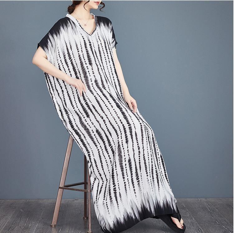 大きいサイズ レディース ロング ワンピース 春夏 秋 新品 半袖 ストライプ