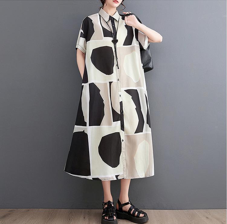 大きいサイズ レディース ロング ワンピース 春夏 秋 新品 半袖 シャツ