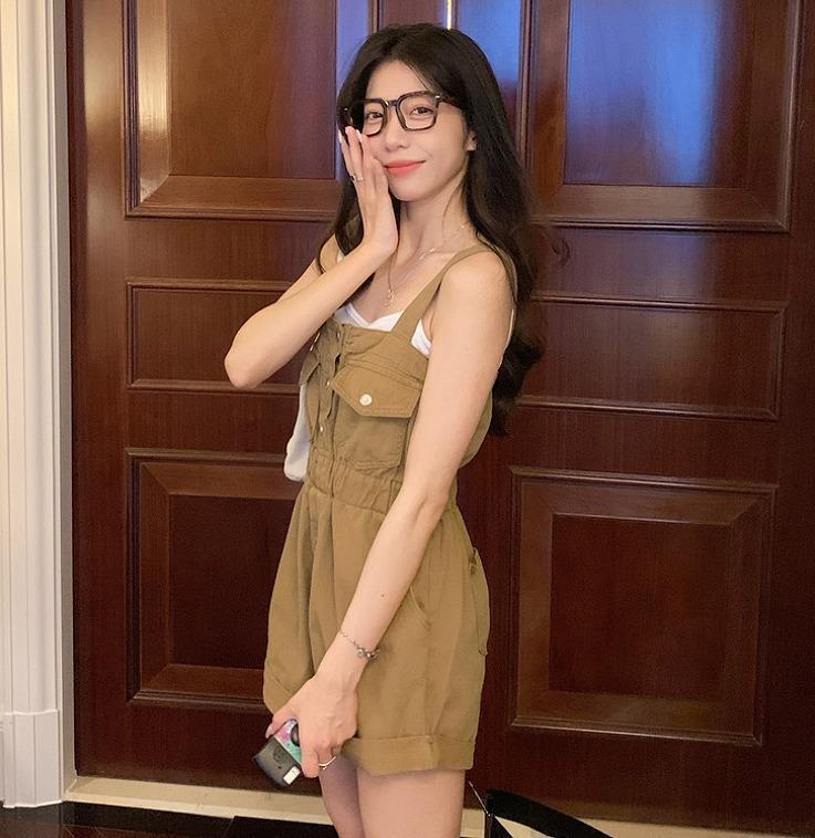 「#大人カジュアル #ショートオールインワン #春夏コーデ #ブラウンコーデ #韓国ファッション」