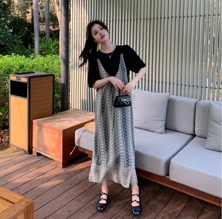 大きいサイズ レディース ワンピース ロング 春夏 秋 新品 半袖 重ね着風