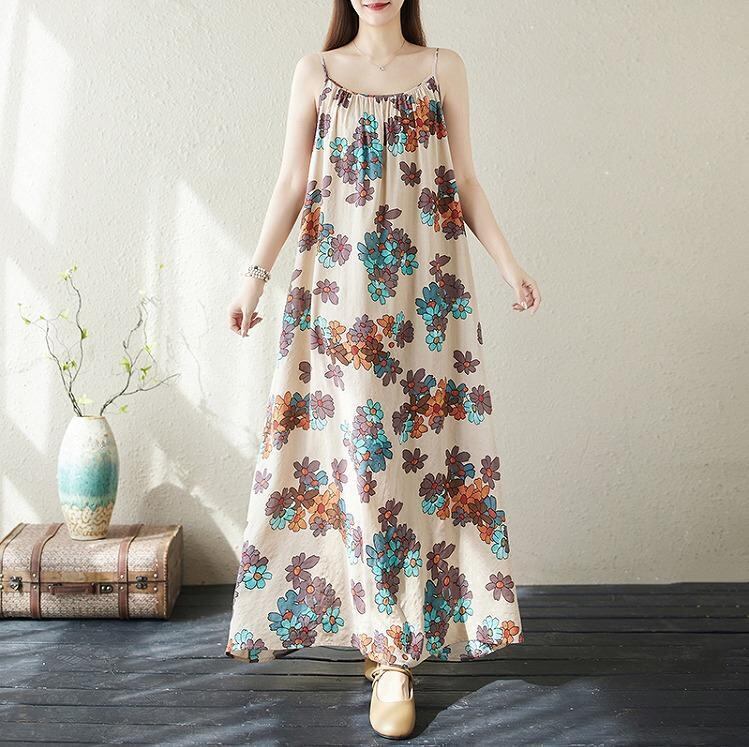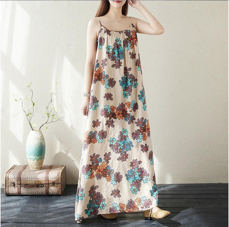 大きいサイズ レディース ロング ワンピース 花柄 春夏 秋 新品 キャミ 袖なし