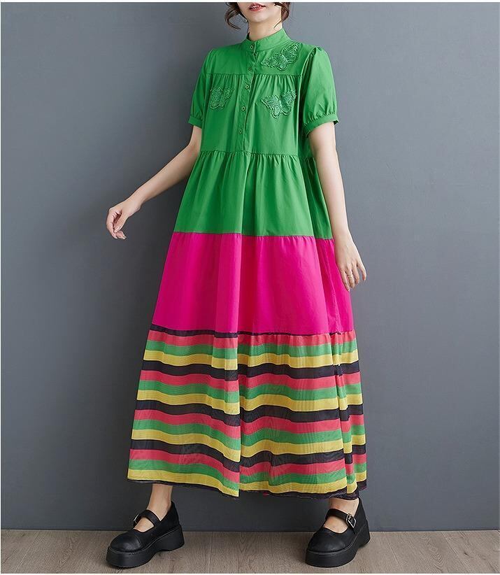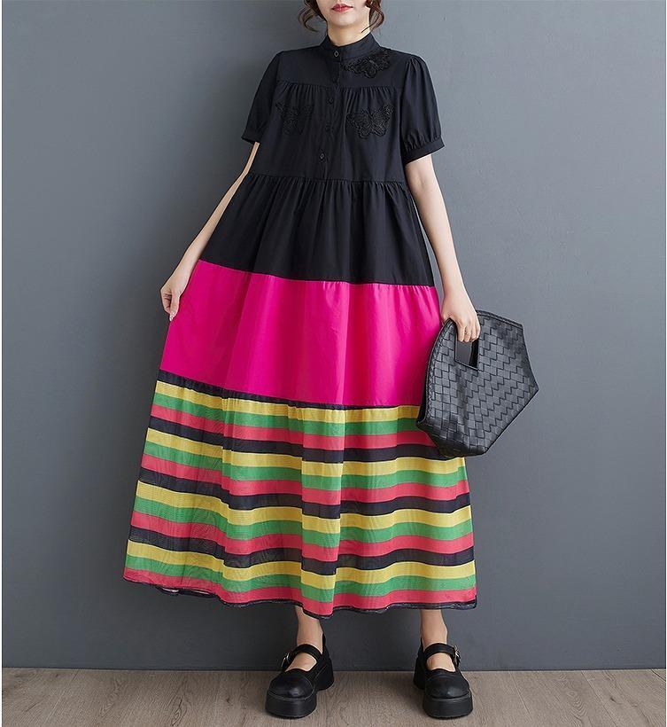 大きいサイズ レディース ロング ワンピース 春夏 秋 新品 半袖 ピンク