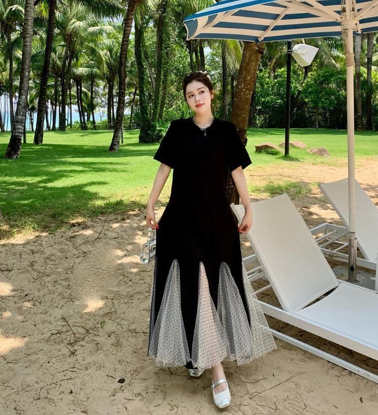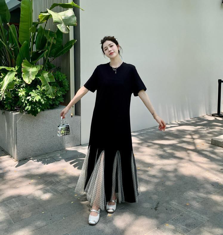 大きいサイズ レディース ロング ワンピース 春夏 秋 新品 半袖 シアー