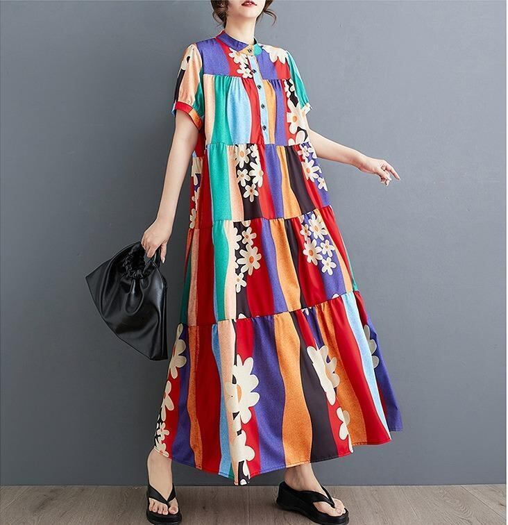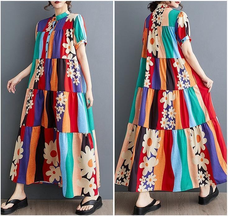 大きいサイズ レディース ロング ワンピース 春夏 秋 新品 半袖 花柄