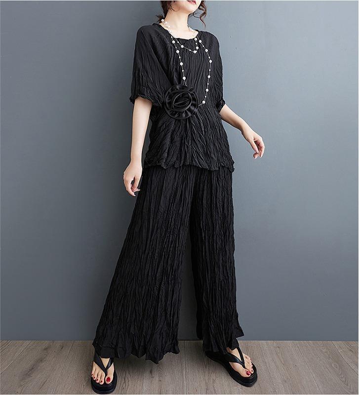 大きいサイズ レディース セットアップ パンツ トップス 春夏 秋 新品 半袖 上下セット