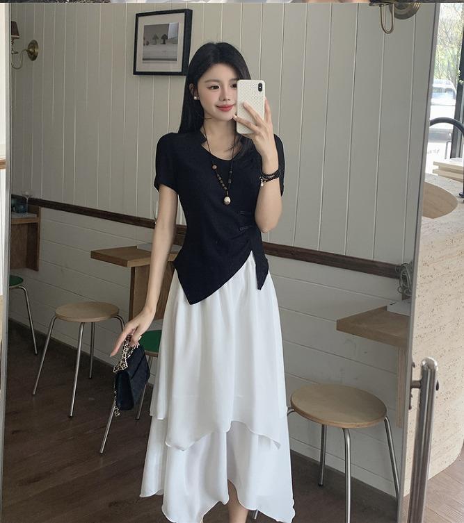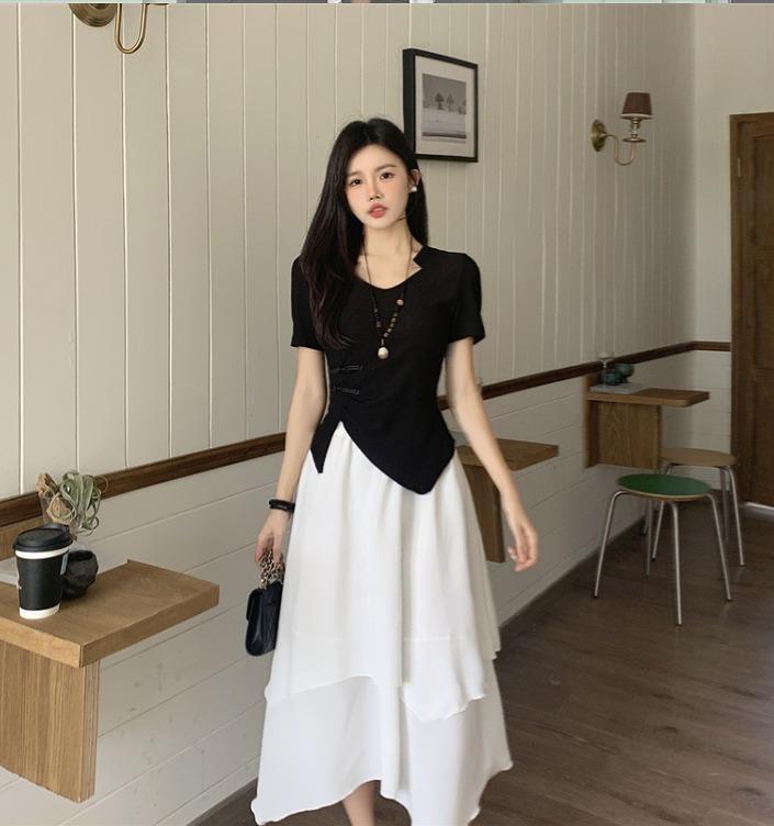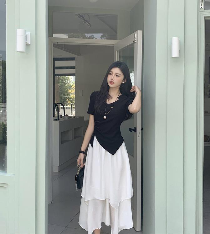 大きいサイズ レディース セットアップ スカート 春夏 秋 新品 半袖 ヘムデザイン 上下セット トップス