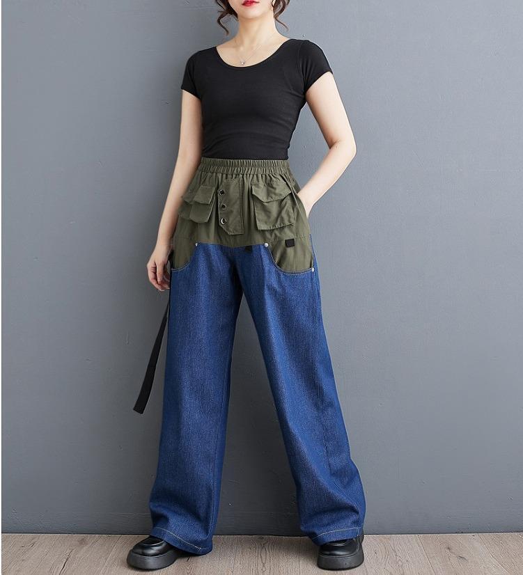 大きいサイズ レディース パンツ ウエストゴム 春夏 秋 新品 カーキ デニム