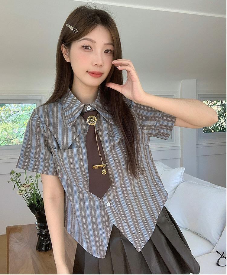 大きいサイズ レディース トップス シャツ タイ 春夏 秋 新品 半袖 アクセサリー