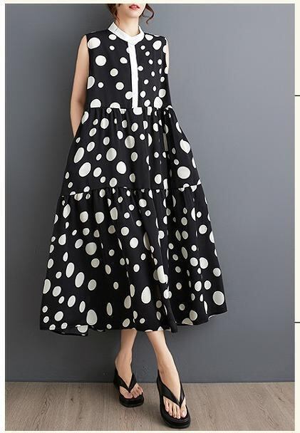 大きいサイズ レディース ロング ワンピース ドット 春夏 秋 新品 ノースリーブ