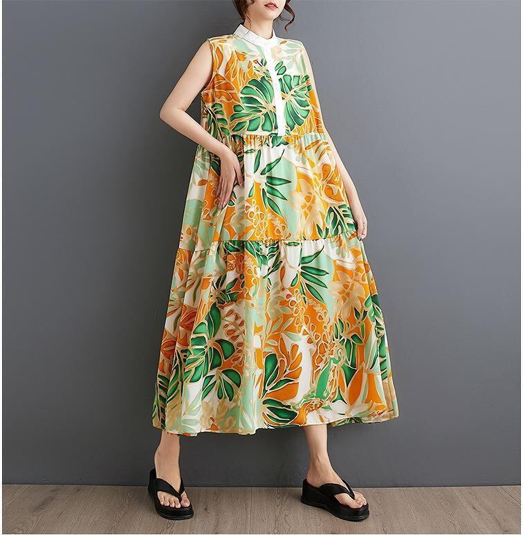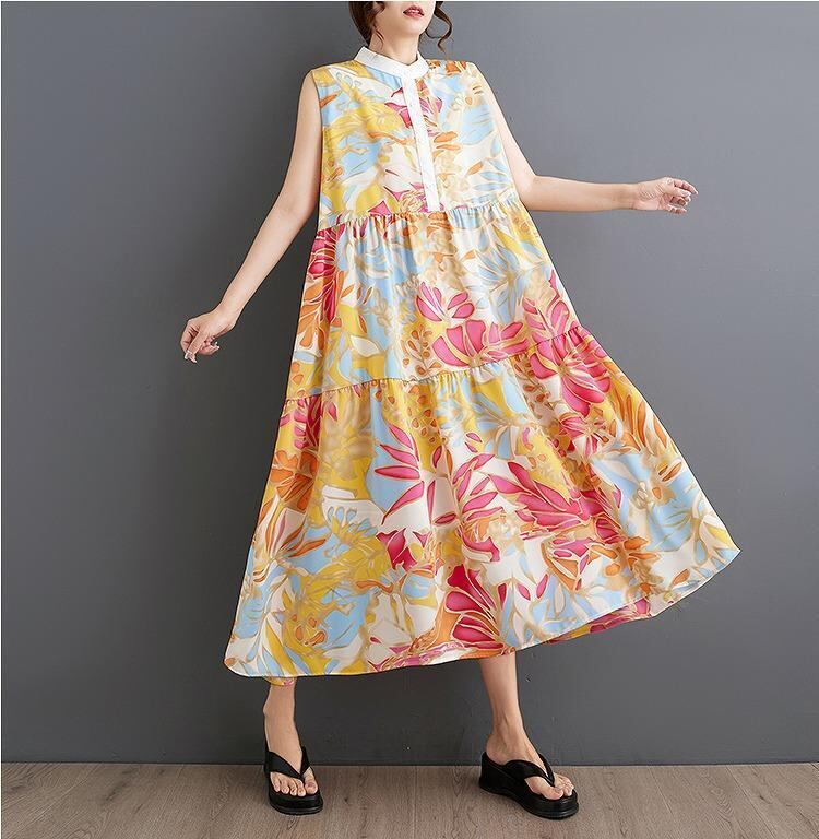 大きいサイズ レディース ロング ワンピース 春夏 秋 新品 ノースリーブ