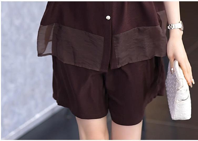 大きいサイズ レディース セットアップ ショートパンツ 春夏 秋 新品 半袖 ブラウン トップス