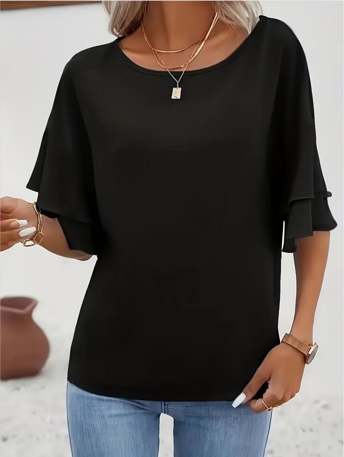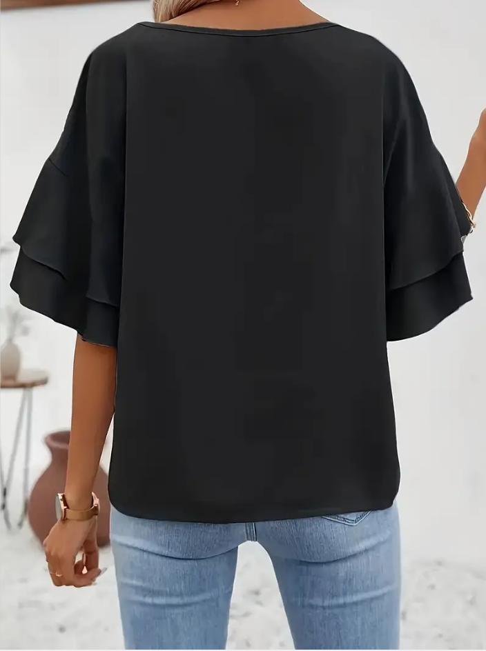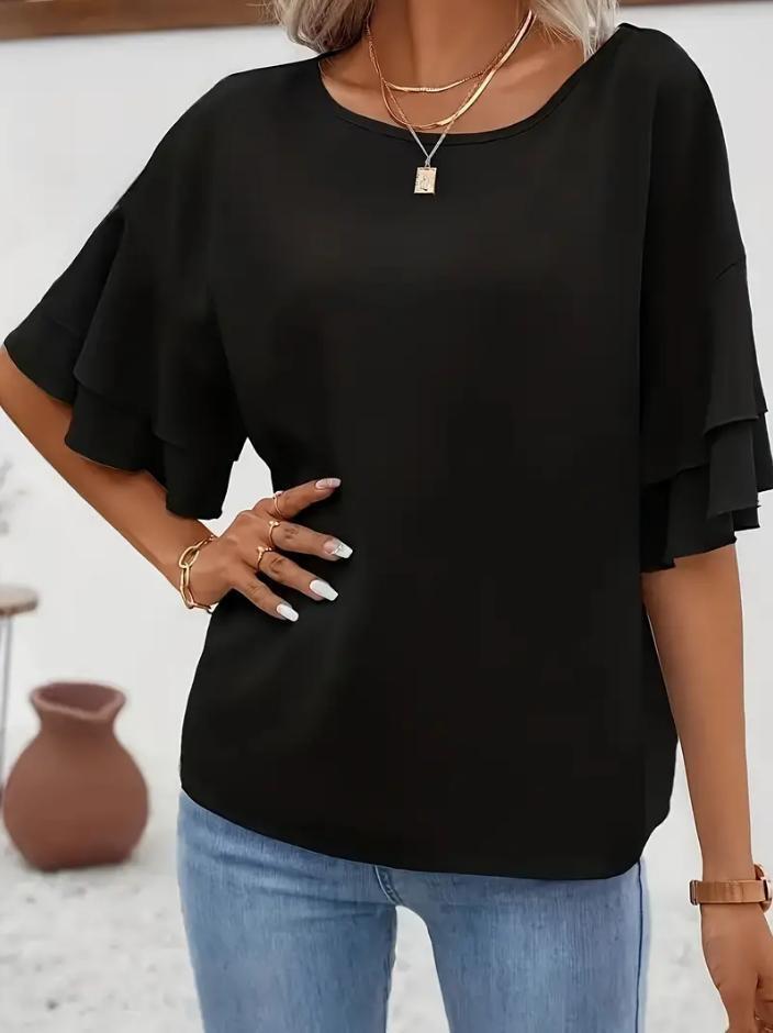 大きいサイズ レディース トップス フリル袖 春夏 秋 新品 半袖 ブラック
