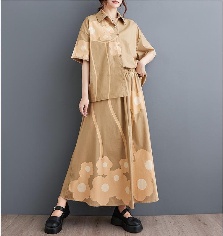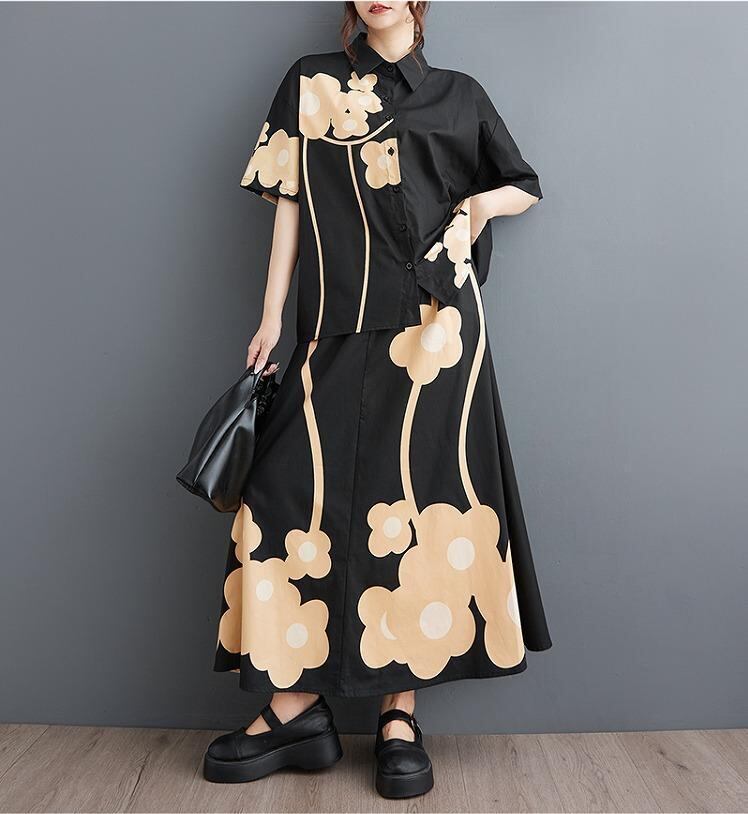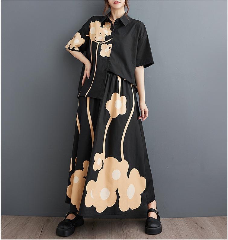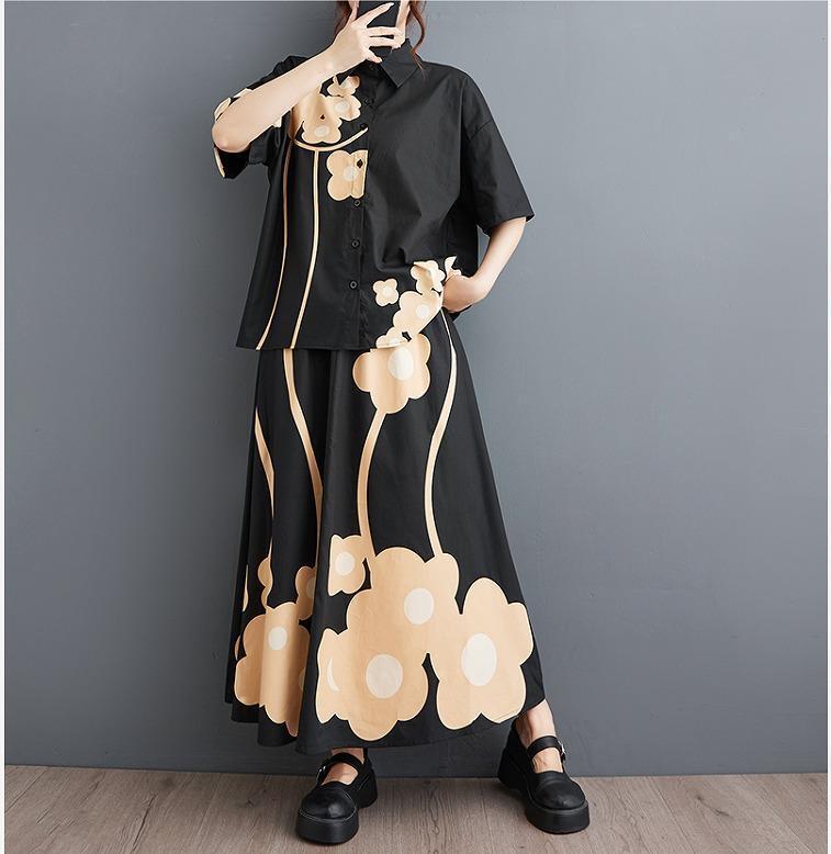 大きいサイズ レディース セットアップ トップス シャツ 春夏 秋 新品 半袖 上下セット 花柄