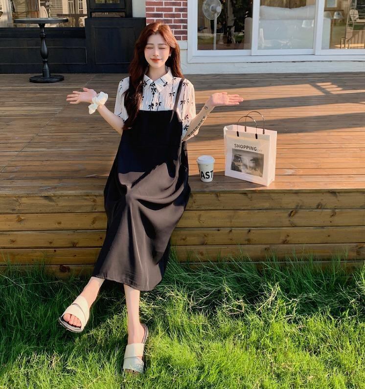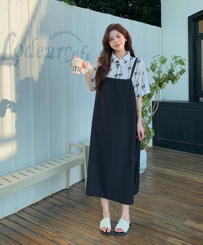 大きいサイズ レディース ワンピース ロング 春夏 秋 新品 半袖 重ね着風 サロペット