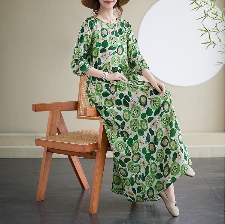 大きいサイズ レディース ロング ワンピース 春夏 秋 新品 長袖 グリーン