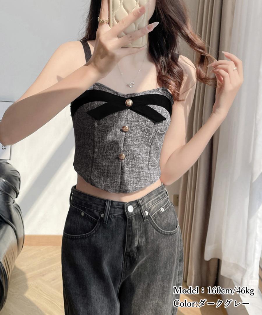 セクシーさと女子力を上げるツイード素材のキャミソールです。