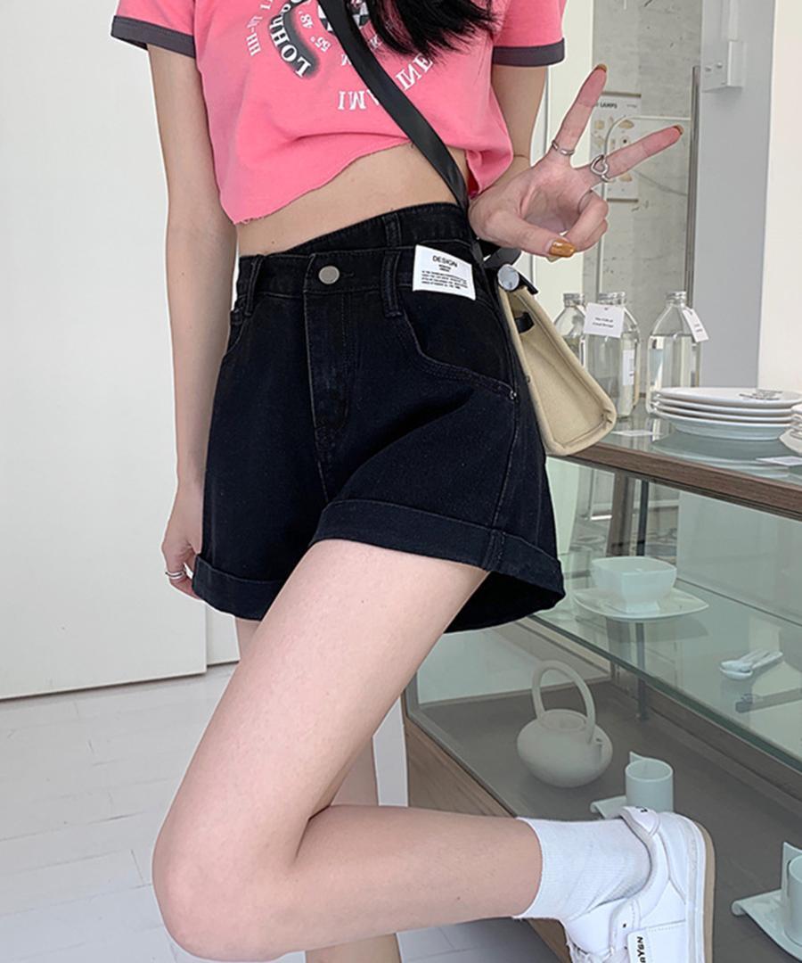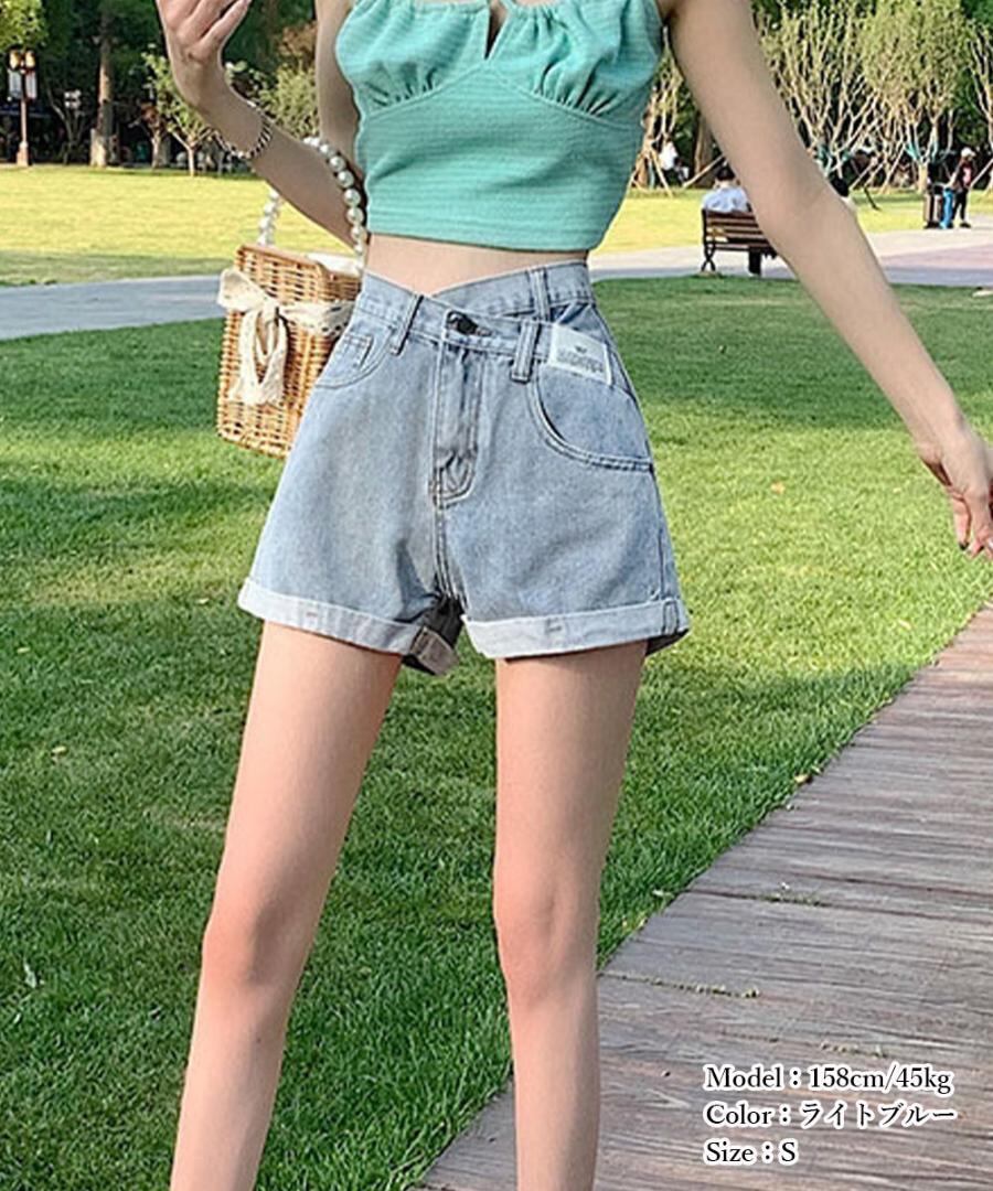 レディース 春夏 秋 新品 ショートパンツ ロールアップホットパンツ Aラインハイウエスト
