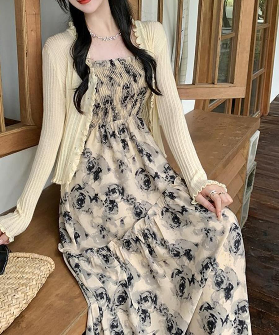 サロペットワンピ夏 フラワーワンピース ノースリーブワンピ