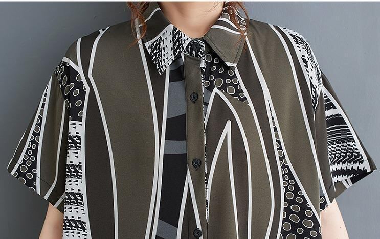 ワンピース 大きいサイズ レディース 春夏 秋 新品 半袖 シャツ カーキ