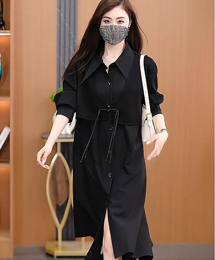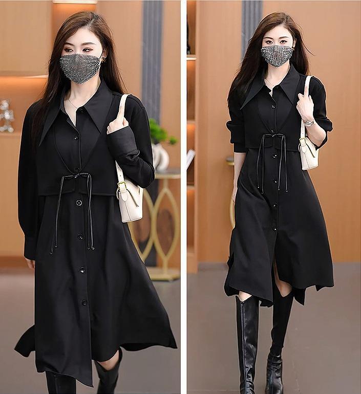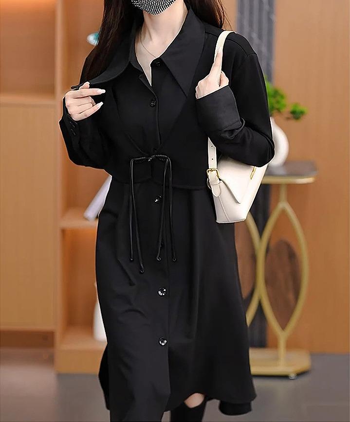 ワンピース シャツ 大きいサイズ レディース 秋冬 春 新品 長袖 服 黒