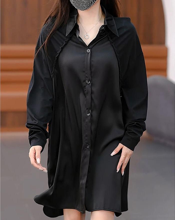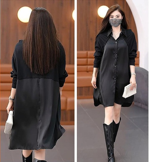 大きいサイズ レディース ワンピース 異素材 秋冬 春 新品 長袖 シャツ