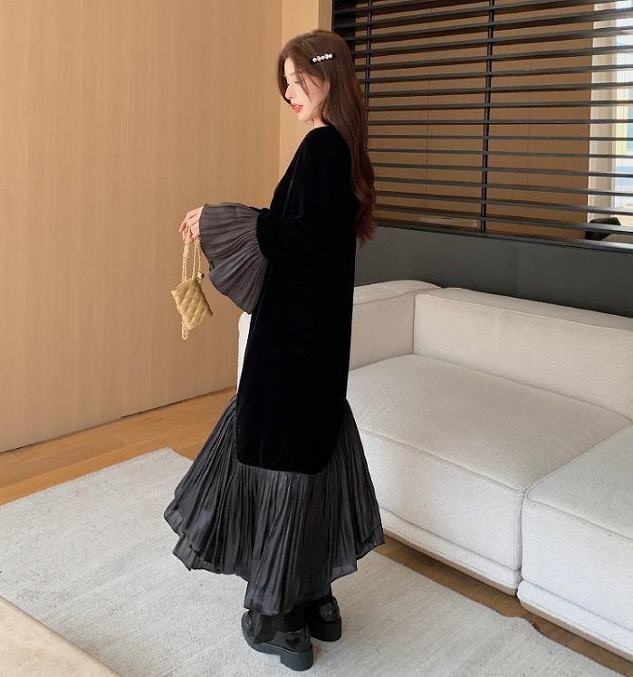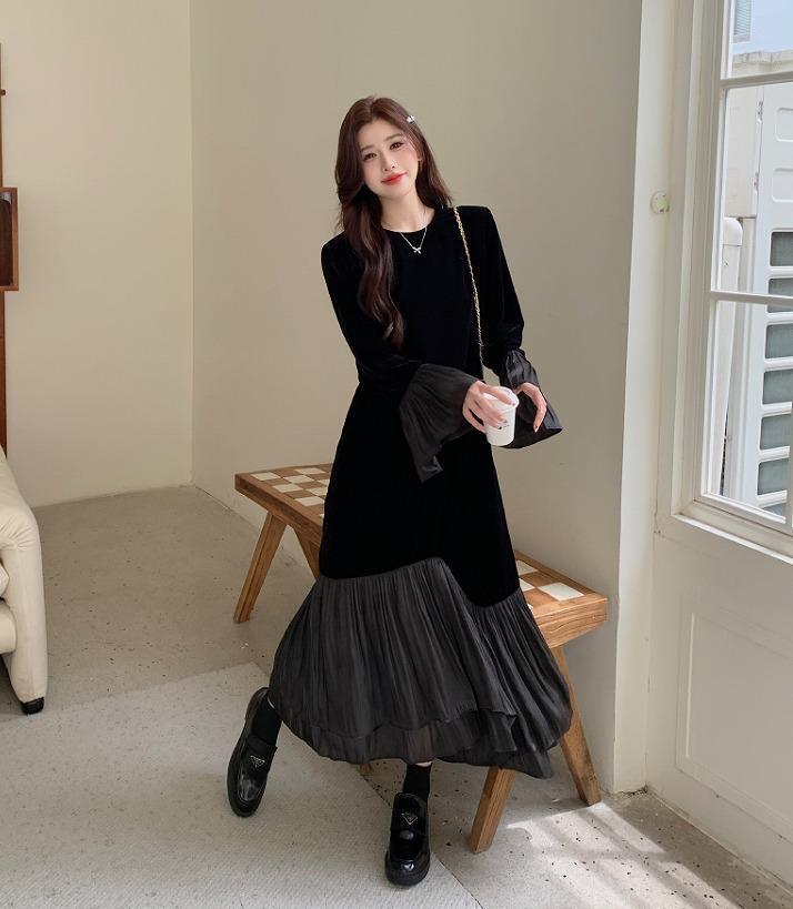 ワンピース ロング 大きいサイズ レディース 秋冬 春 新品 長袖 フレア