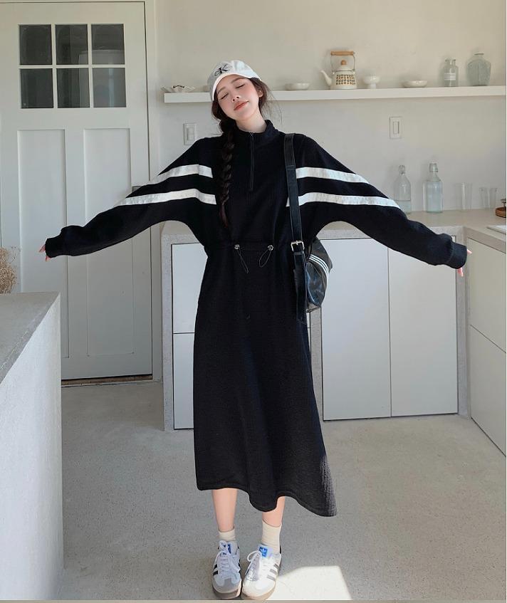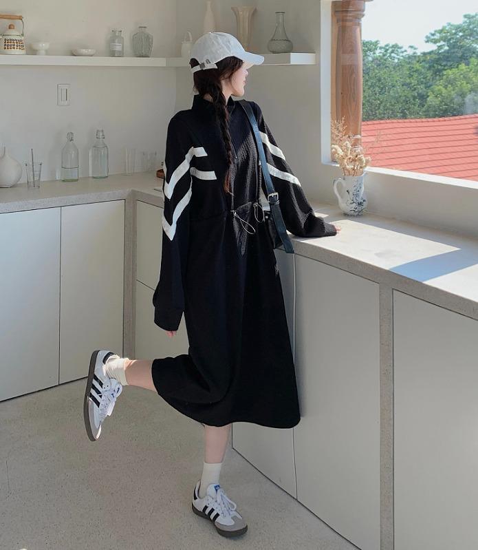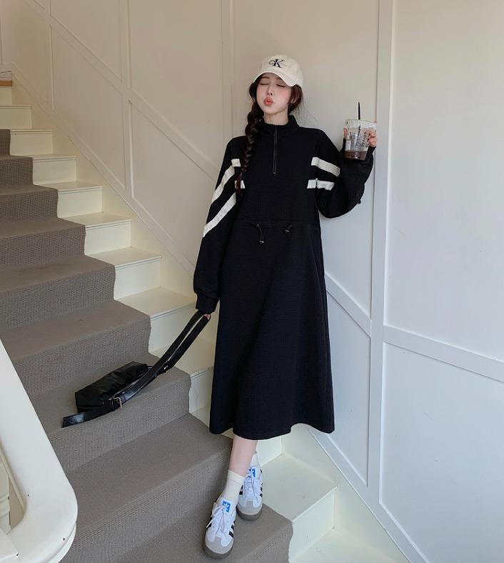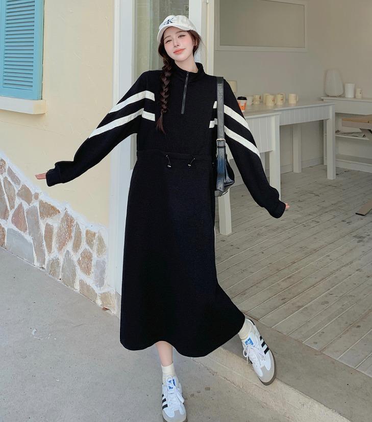大きいサイズ ロング ワンピース レディース 秋冬 春 新品 長袖 ブラック