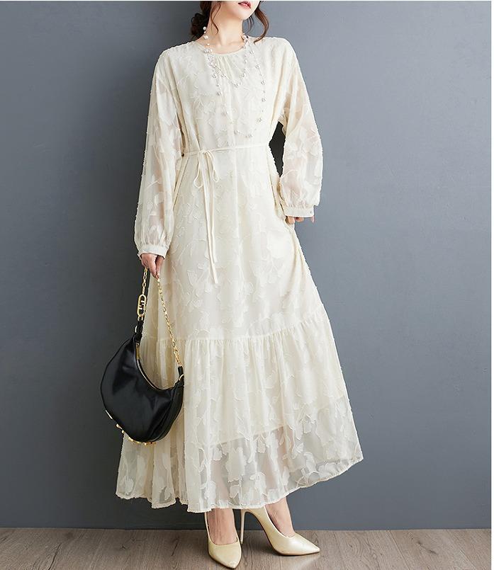 レース シアー 大きいサイズ レディース 秋冬 ワンピース 春 新品 長袖 ロングワンピース