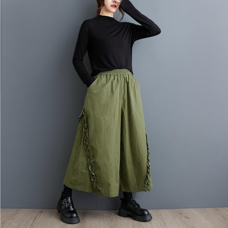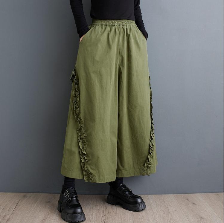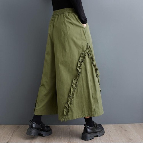 ワイドパンツ 大きいサイズ レディース 秋冬 春 新品 ウエストゴム カーキ