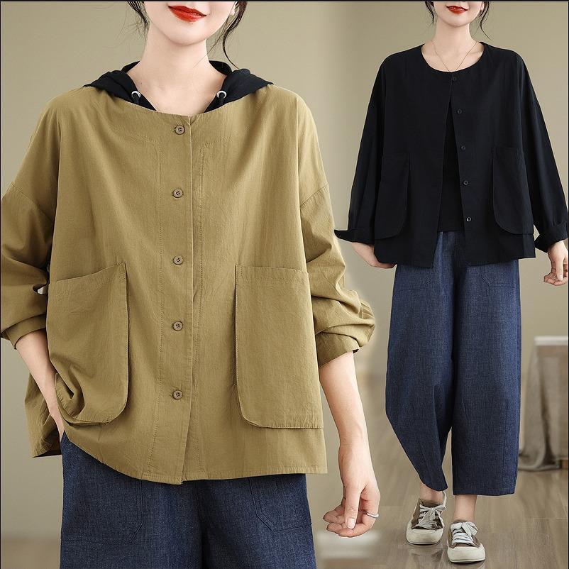 大きいサイズ 重ね着風 シャツ パーカー レディース 秋冬 春 長袖 フード