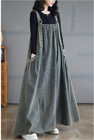 大きいサイズ サロペット ワンピース レディース 秋冬 春 新品 グリーン スカート ロング 緑