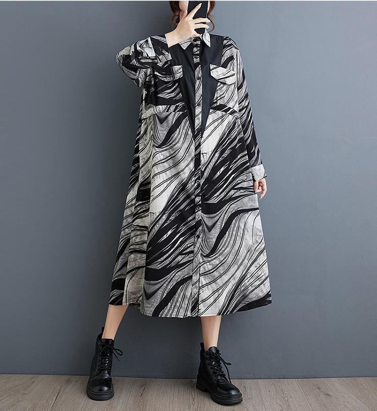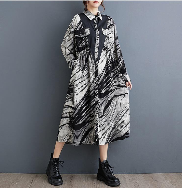 大きいサイズ ワンピース 長袖 レディース 秋冬 春 新品 シャツ ロング