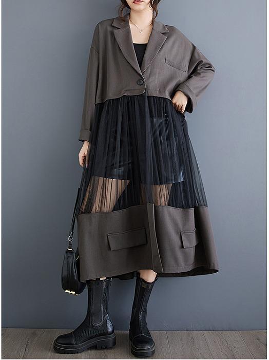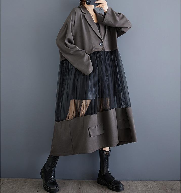 大きいサイズ 異素材 ワンピース シアー レディース 秋冬 春 新品 長袖