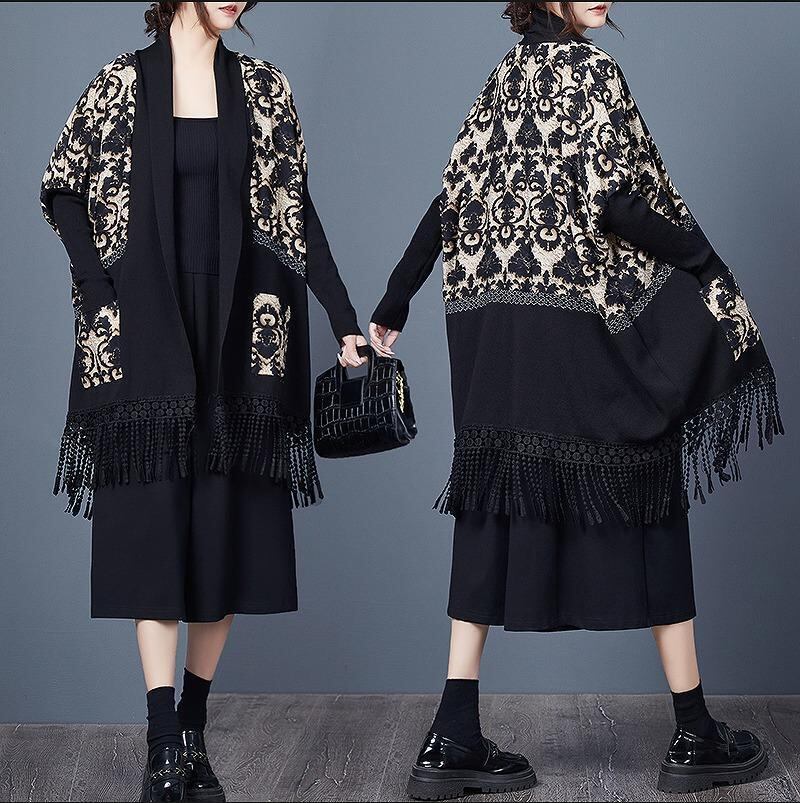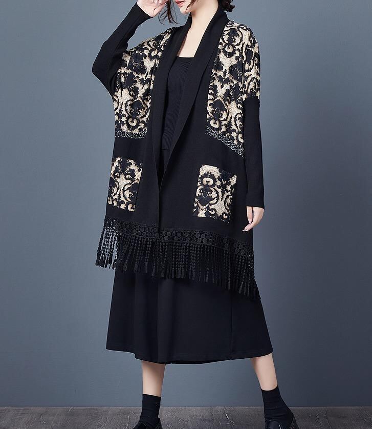 大きいサイズ ニット コート フリンジ レディース 秋冬 春 長袖 羽織り アウター 新品