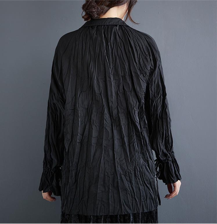 大きいサイズ トップス くしゅくしゅ レディース 秋冬 春 新品 長袖 ブラック シャツ ブラウス
