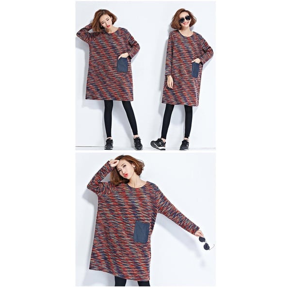 大きいサイズ レディース ミックスカラー デニムポケット ワンピース 海外セレブ
